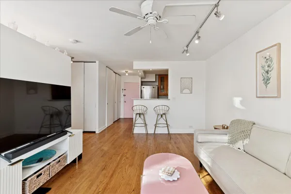 Welcome to one of Chicago's most sought-after locations, where the Gold Coast meets Old Town. This spacious junior one-bedroom is ideally situated in desirable Sandburg Village and offers west-facing views of the beautifully landscaped courtyard and stunning sunsets! Freshly painted in 2025, this move-in-ready home features hardwood floors throughout, a generously sized bedroom with faux wood blinds and blackout window treatments, and a newly updated full bath (2025). The open kitchen is well-appointed with 42" maple cabinetry, stainless steel appliances, a breakfast bar, and generous storage-perfect for both everyday living and entertaining. The unit includes a dedicated additional storage space and access to an array of exceptional amenities, including a rooftop deck, hospitality rooms, a package receiving room, Tide Laundry Service, 24/7 door staff and security, bike room, tennis courts, and two swimming pools. Monthly assessments cover heat, water, cable, and internet. Heated indoor parking is available (subject to wait list) for an additional monthly fee. Pet friendly and investor friendly, this prime location is just steps from public transportation, parks, great restaurants, shopping (Jewel Osco is just two blocks away), Lincoln Park Zoo, and North Avenue Beach. Enjoy quick access to the lakefront with miles of biking and running paths. - Here's your opportunity to live in an unbeatable location-move right in and enjoy the best of city living. Being sold AS IS & $500 Credit at Closing!