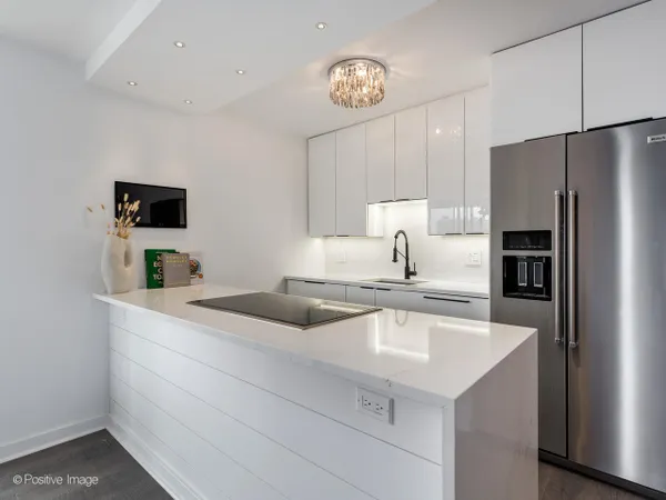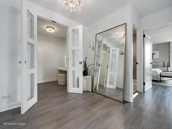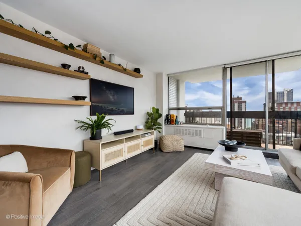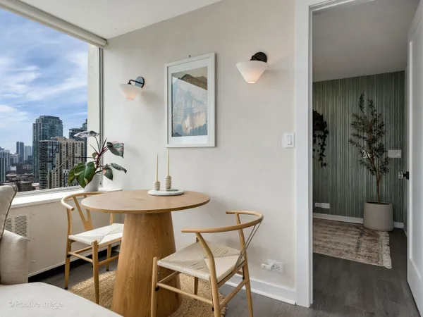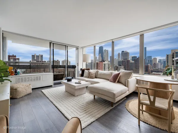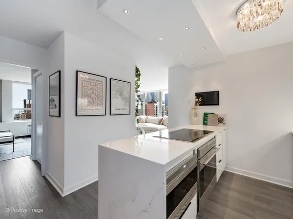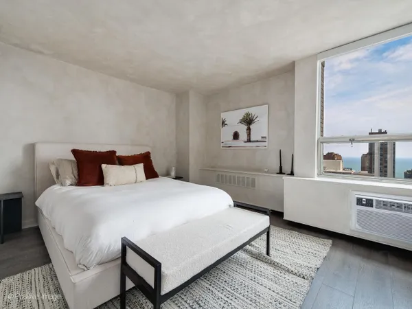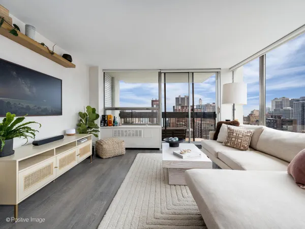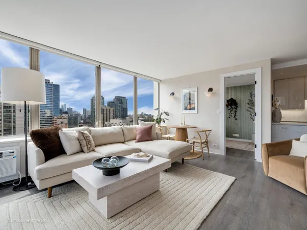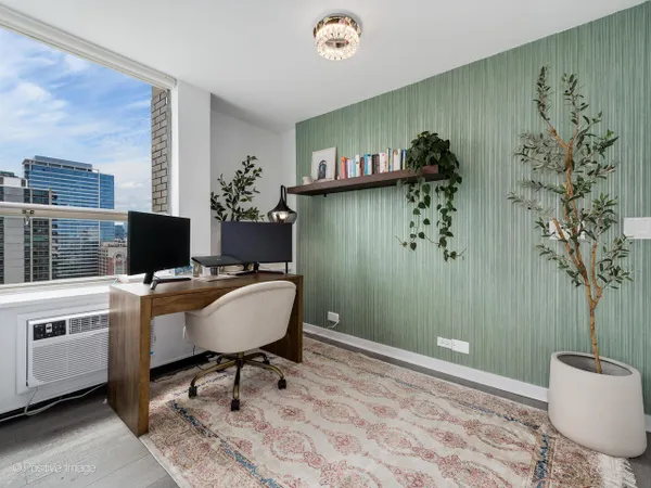 This unit has tenants until September 1st, 2025. Discover elevated urban living in this sophisticated 2-bedroom + 1 bath + office/den corner unit within Sandburg Village, perfectly nestled between the Gold Coast and Old Town. Situated on the 23rd floor, this newly renovated space is bathed in natural light through wrap-around windows with east, south, and west exposures, offering stunning city and lake views along with a private balcony for picturesque sunsets. Every detail in this unit speaks to quality and style, from the open kitchen with custom European cabinets, sleek black accents, quartz countertops, under-cabinet LED lighting, and a 22" recessed smart TV, to top-tier appliances including a 36" WOLF cooktop and WOLF wall oven. French doors open to a versatile office/den with custom closets, while WiFi-enabled lighting, electric window treatments and ultra-durable grey flooring elevate the contemporary feel. The primary bedroom offers lake views, a walk-in closet, while the second bedroom provides city views and flexible space for guests or a home office. Sandburg Village enhances your living experience with two Olympic-size heated pools, tennis courts, landscaped courtyards, a rooftop deck, bike and personal storage, and 24-hour doorman service, with garage parking available. Steps from public transit, Lake Shore Drive, and the lakefront, this home places you at the heart of vibrant dining, shopping, nightlife, and parks.
